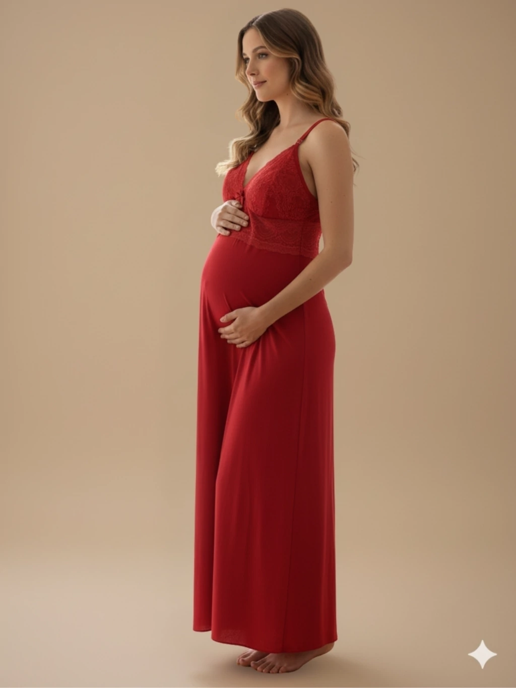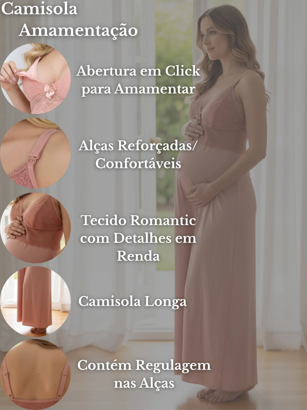 — PACOTE INCLUI: 1 Camisola de Amamentação Longa Renda