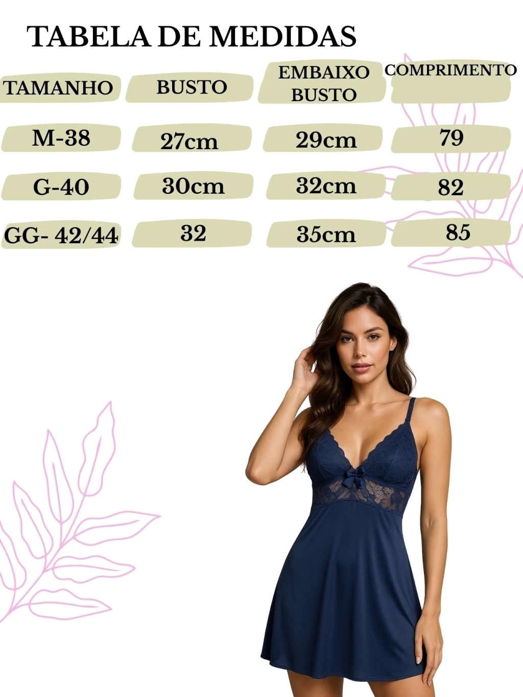 Com um detalhe de renda no busto, esta camisola possui um visual irresistível. As alças são reguláveis, permitindo um ajuste perfeito ao corpo.