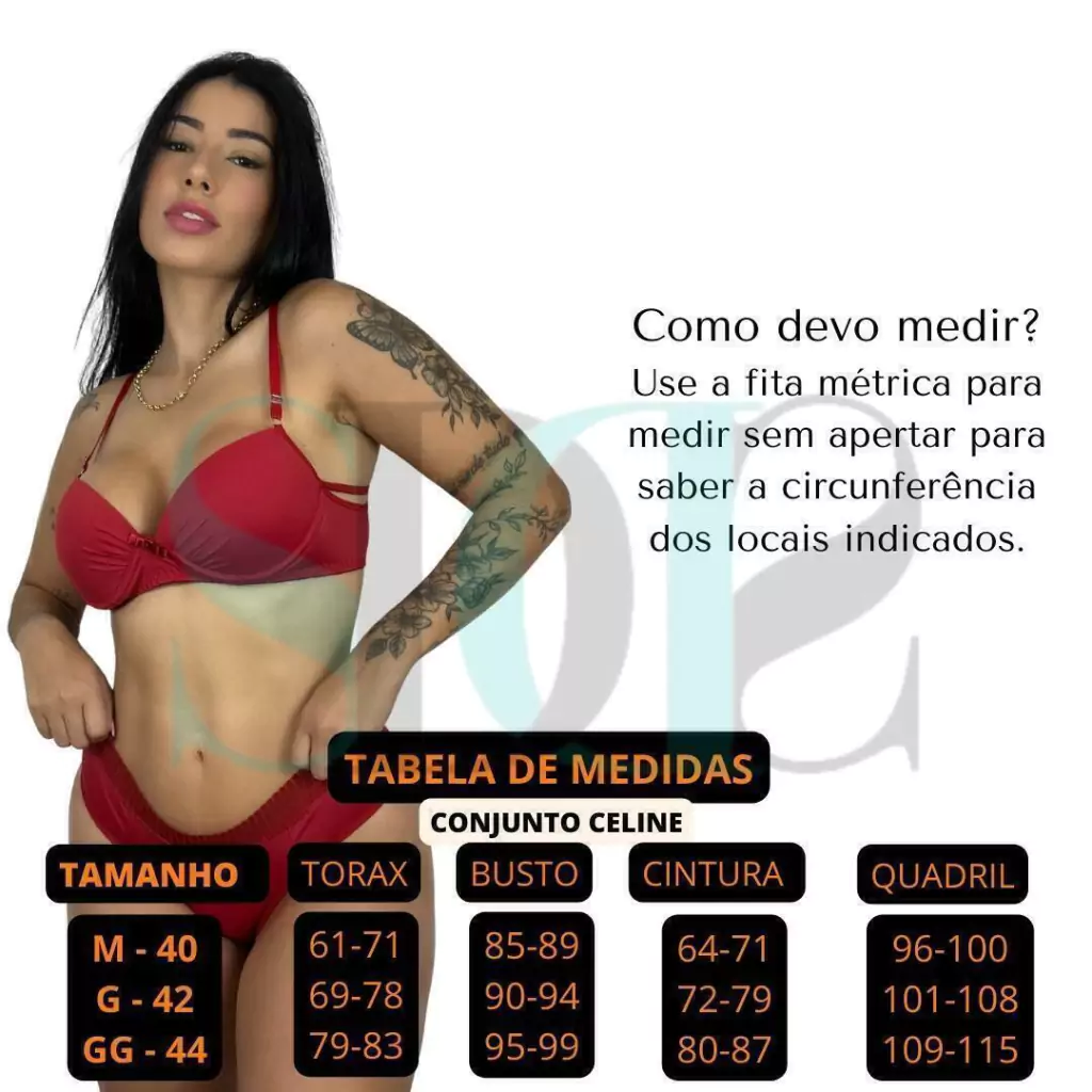 Conjunto Sutiã com Bojo e Calcinha Lingerie em Microfibra Celine.