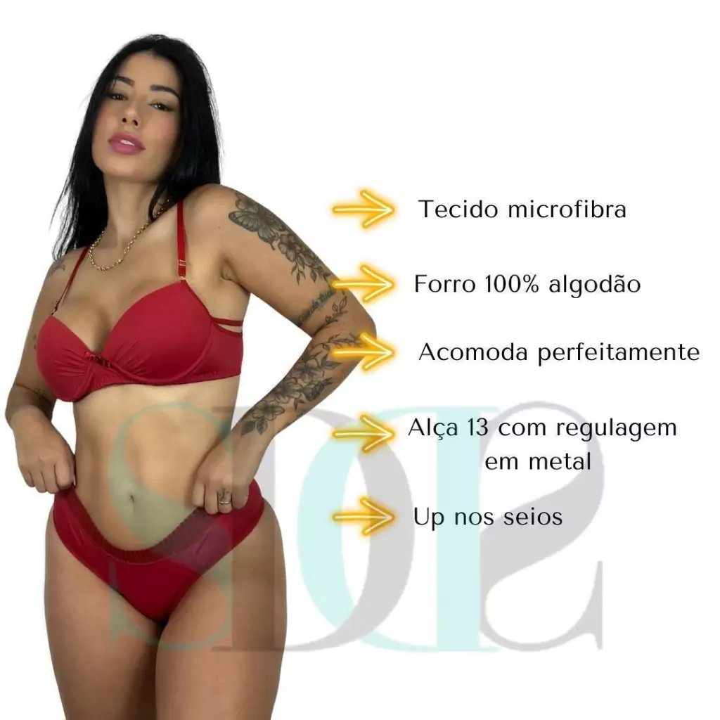 Conjunto Lingerie Calcinha e Soutien Reforçados estilo Conforto em Microfibra.
