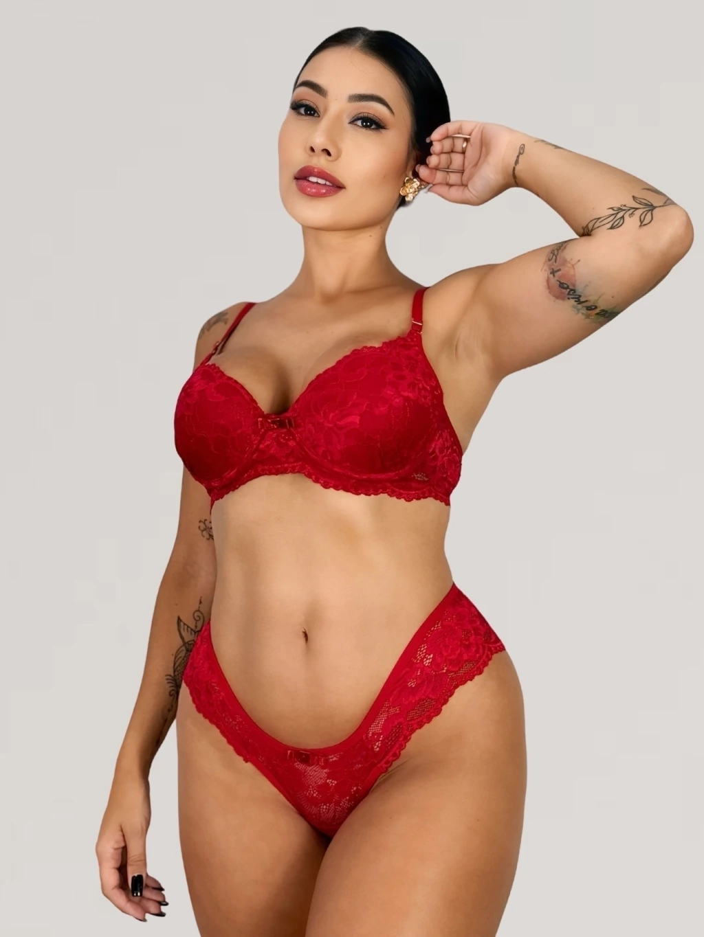 Conjunto Lingerie Renda Sutiã Com Bojo E Calcinha - Moda Íntima Feminina Renda Luxo.