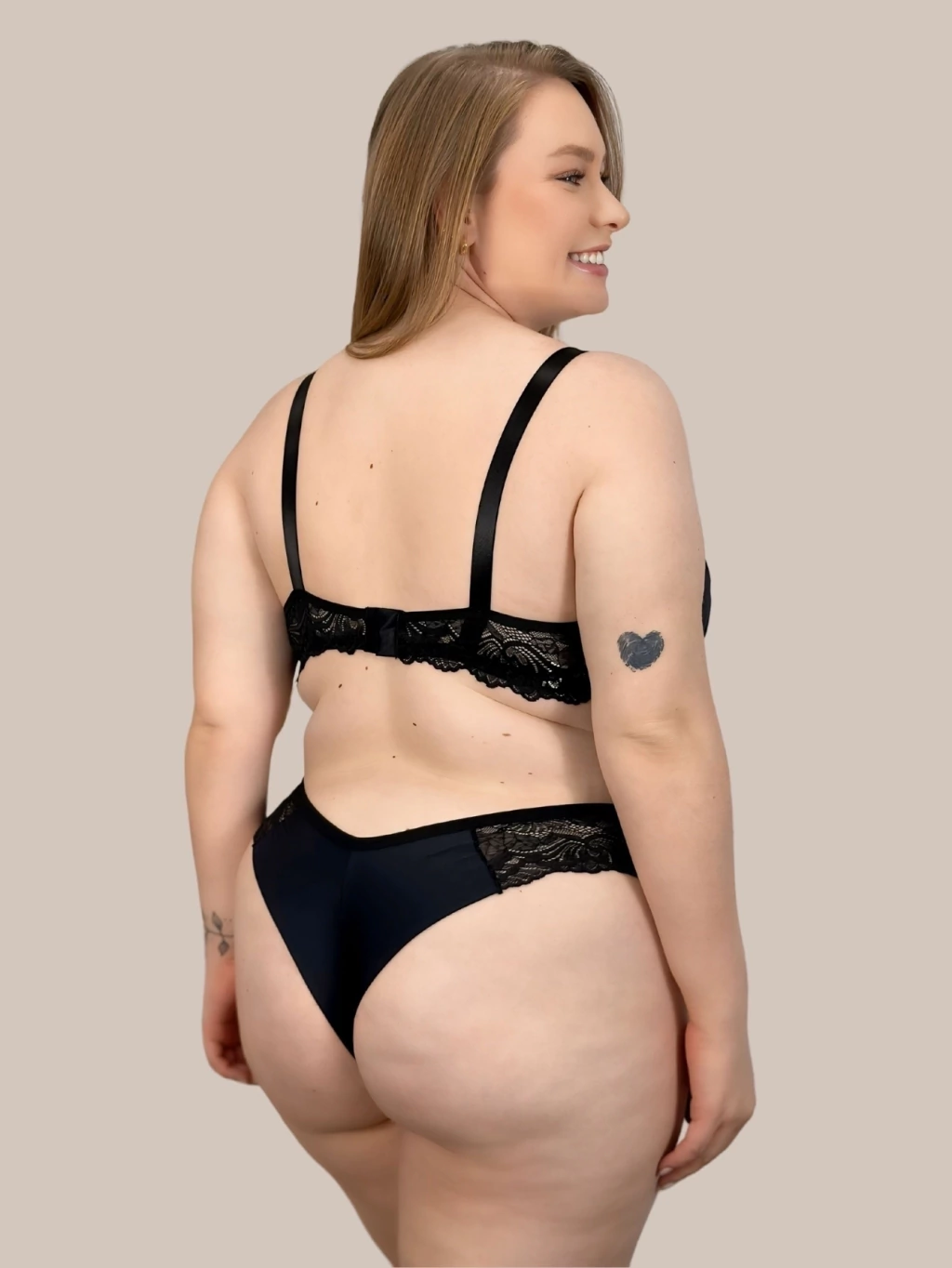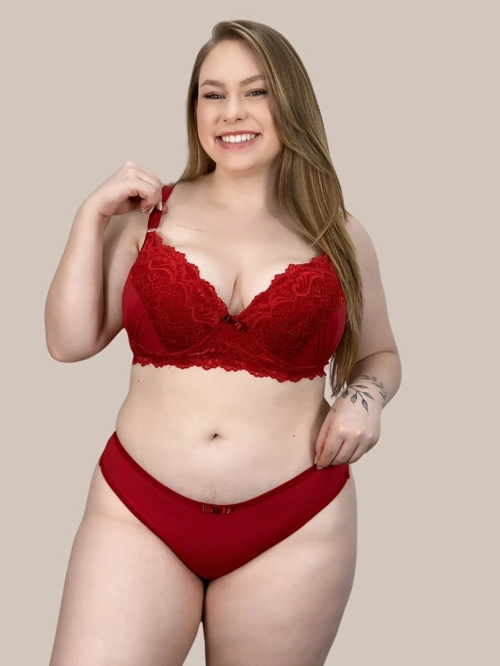 Conjunto PLUS SIZE Sutiã com Bojo e Calcinha Lingerie em Microfibra E Detalhe em Renda Fabiana.