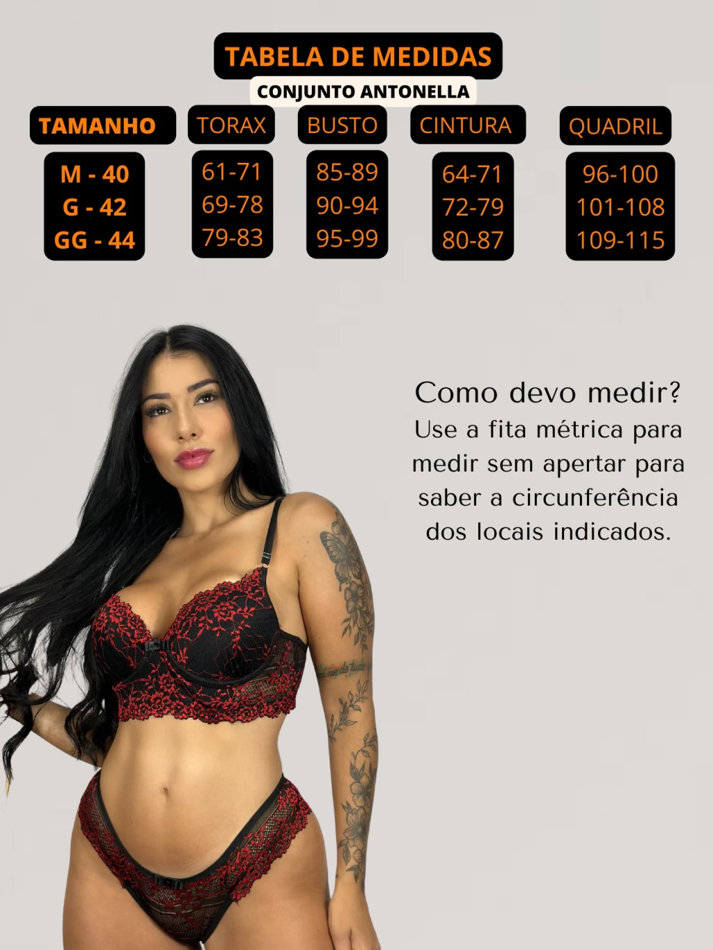 A calcinha em renda poliamida completa o conjunto com um toque macio, confortável e durável, valorizando as curvas de forma elegante.