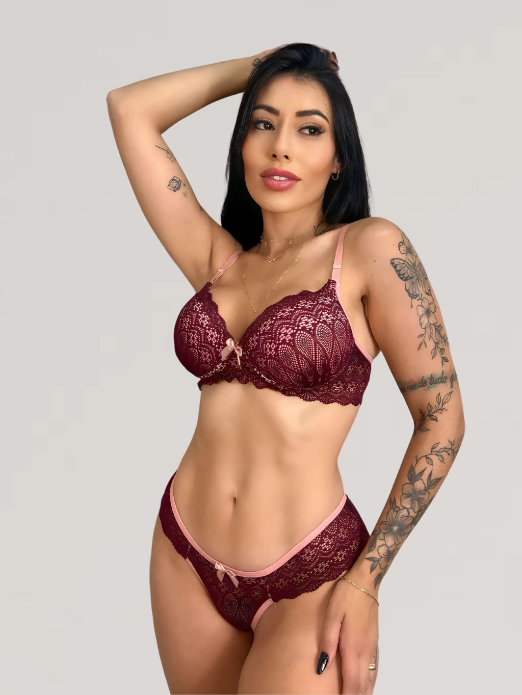 Lingerie Renda Luxo com Bojo Conjunto Calcinha e Soutien Moda Íntima Feminina.