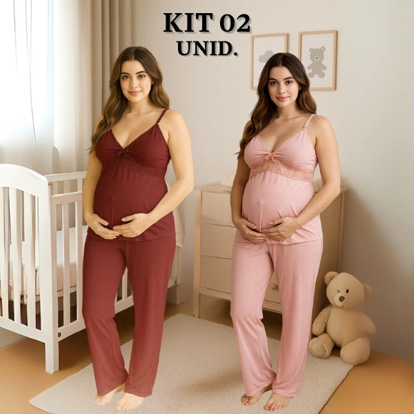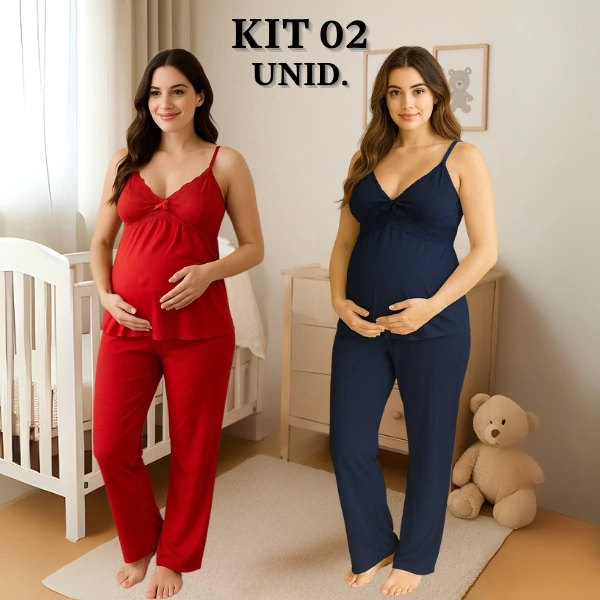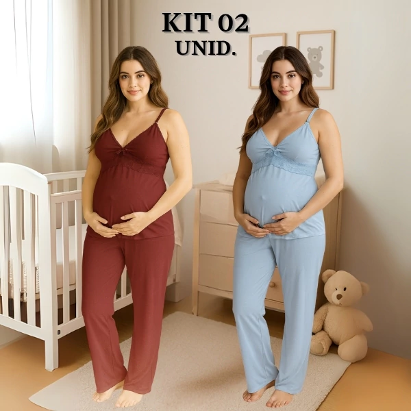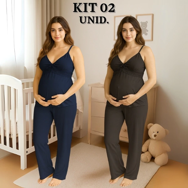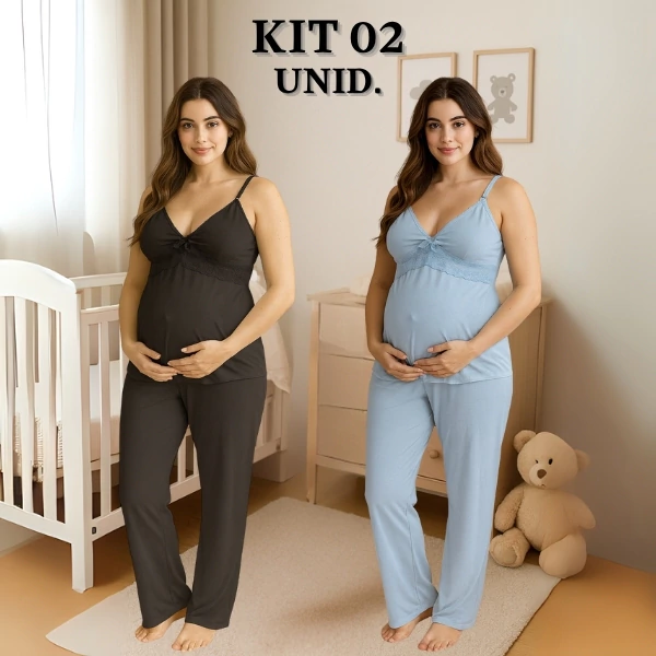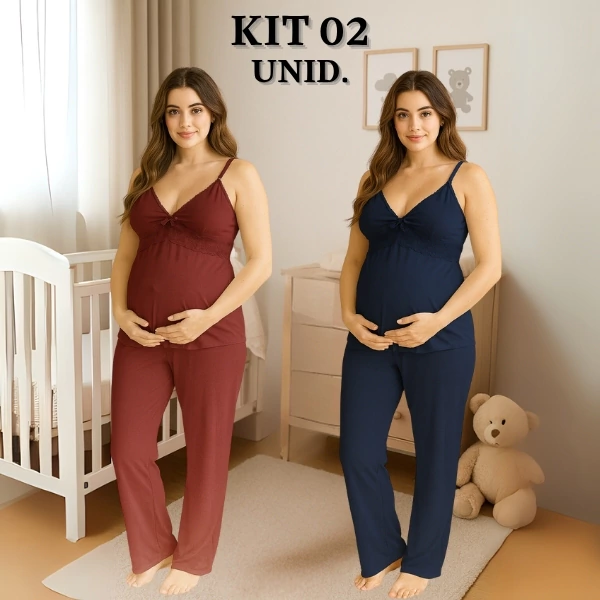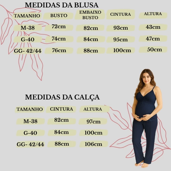 Experimente o conforto e a praticidade que você merece no pós-parto com nosso Pijama Amamentação de calça e blusa de alcinha, especialmente desenvolvido para facilitar o seu dia a dia.