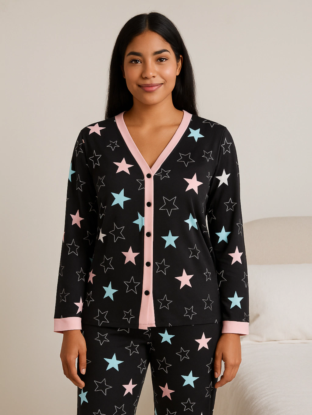 DESTAQUES PIJAMA AMERICANO LONGO ESTAMPADO